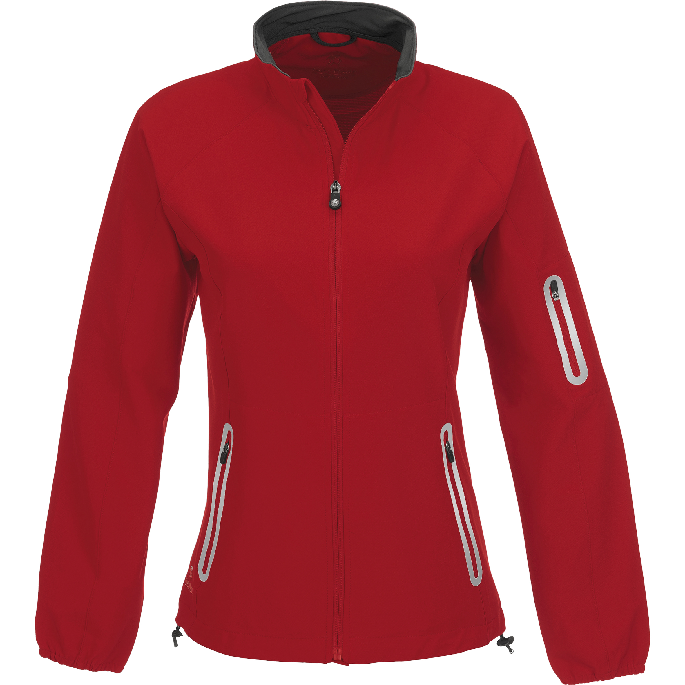 logo at front right hem Black Knight zip puller hanging loop